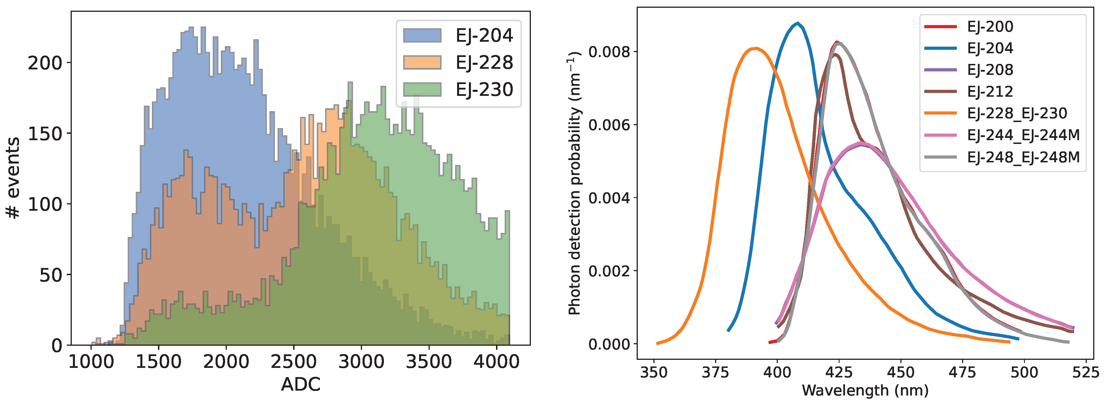 - De Angelis, N.; Cadoux, F.; Husi, C.; Kole, M.; Mianowski, S. Optimizing the light output of a plastic scintillator and SiPM based detector through optical characterization and simulation: A case study for POLAR-2. J. Instrum. 2025, 20, P02010. [Google Scholar] [CrossRef]