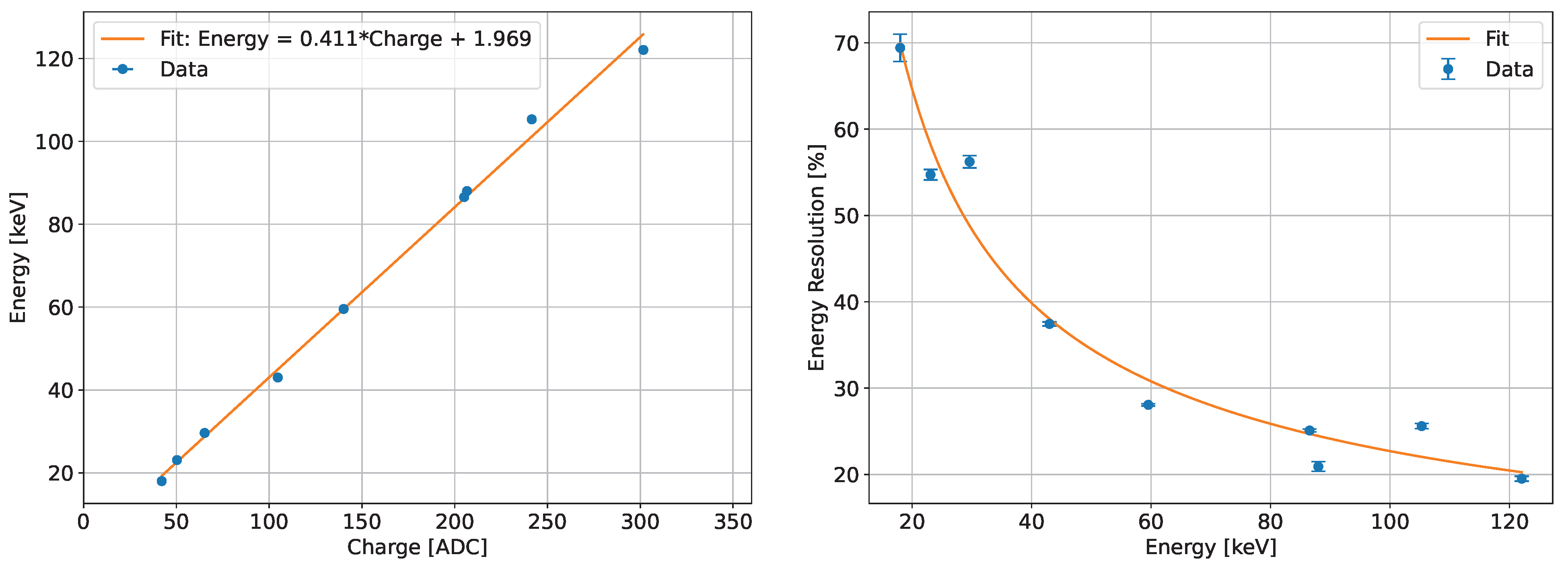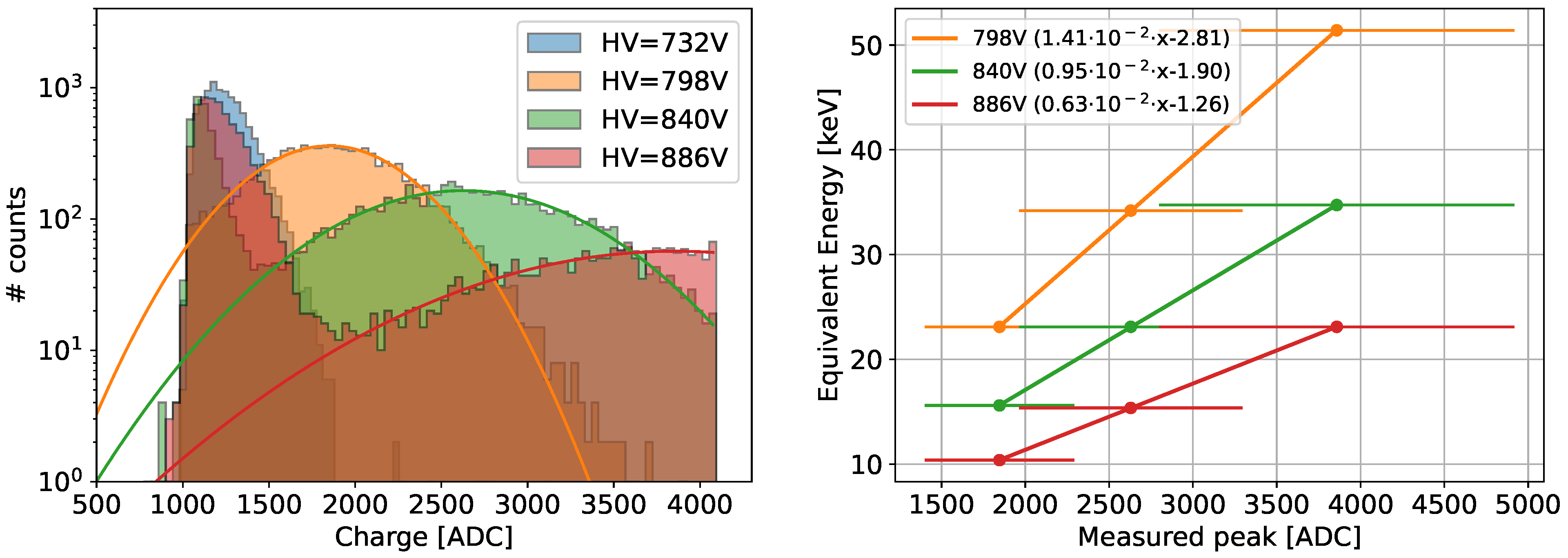 | Energy (keV) calibrated with ref. HV = 840 V | 15.61 | 23.108 | 34.73 |