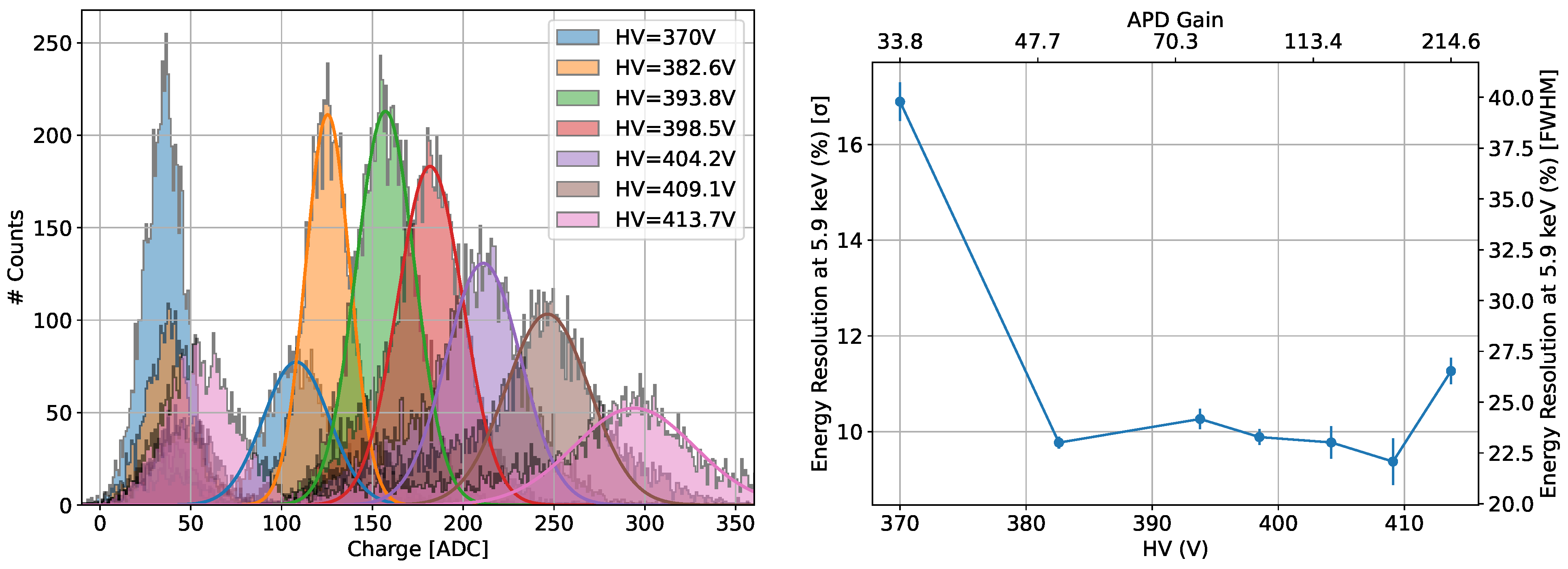| Energy (keV) calibrated with ref. HV = 886 V | 10.39 | 15.37 | 23.108 |