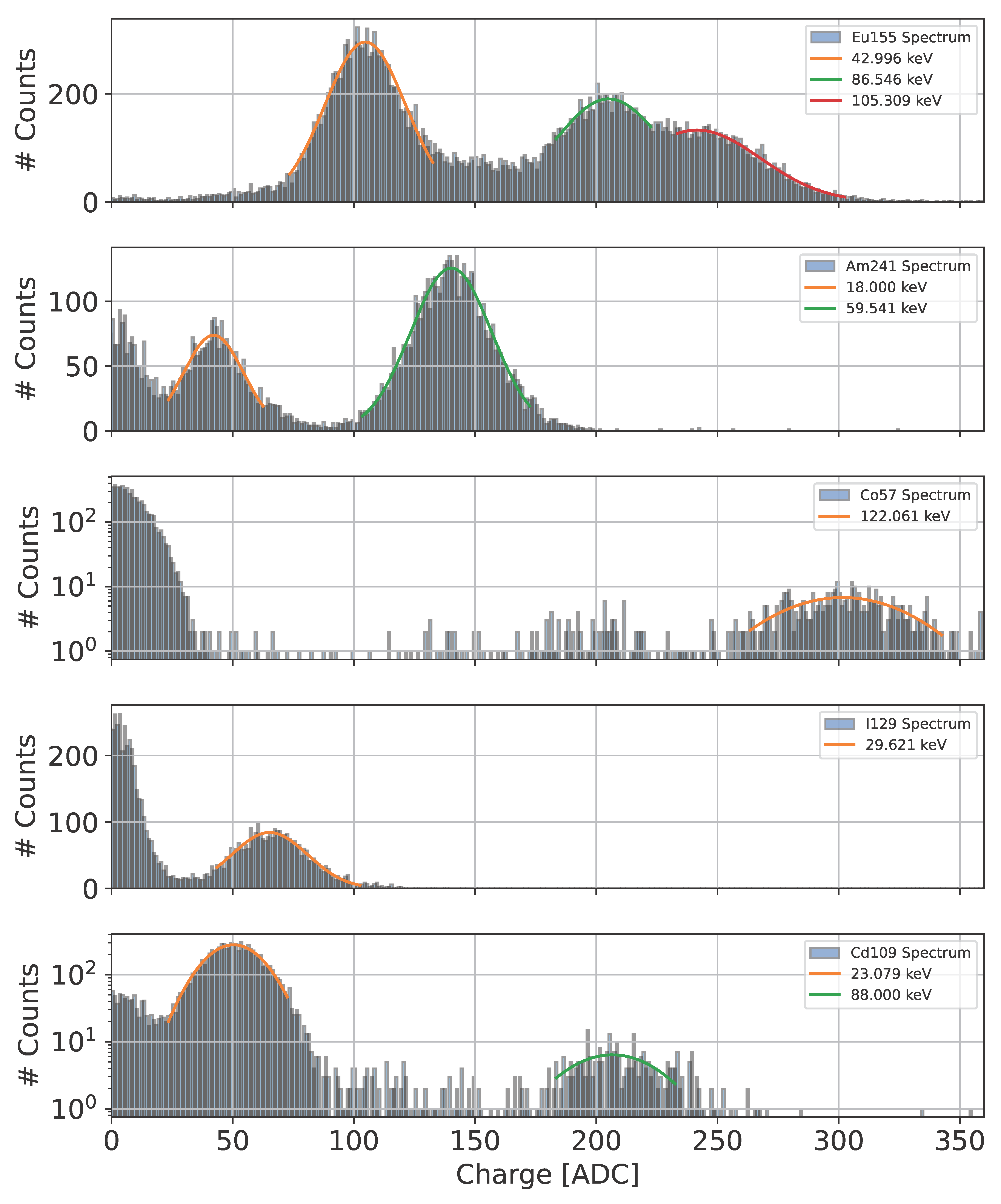 | Upper energy boundary (4096 ADC) (keV) | 54.77 | 37.01 | 24.62 |