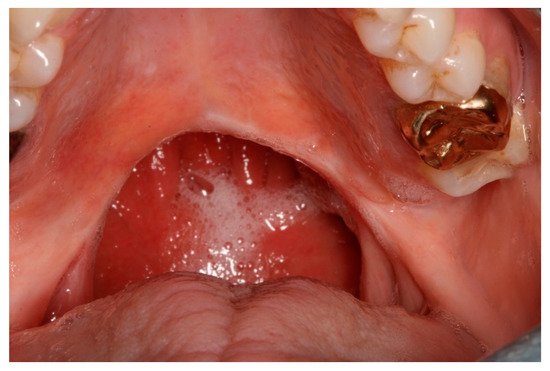 CH had regular reviews, and approximately 18 months after the provision of this last prosthesis, she started to struggle with retention of the prosthesis and nasal regurgitation of liquids. On re-presentation, all extra-oral and intra-oral tissues appeared healthy.