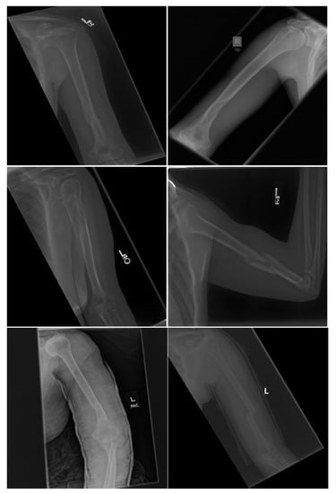 - Rajpurkar, P.; Irvin, J.; Bagul, A.; Ding, D.; Duan, T.; Mehta, H.; Yang, B.; Zhu, K.; Laird, D.; Ball, R.L.; et al. MURA: Large Dataset for Abnormality Detection in Musculoskeletal Radiographs. arXiv 2017, arXiv:1712.06957. [Google Scholar]