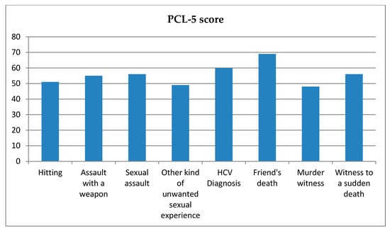 In all 8 events that took place between 7 and 15 years ago, the woman had a provisional diagnosis of chronic PTSD in both methods []. The score of all scales varied between 48 and 69. The highest score was exposure to death of her best friend (Figure 1). Furthermore, the woman met all the diagnostic criteria of PTSD (A, B, C, D, and E). These scores suggested that the woman may benefit from PTSD treatment.
