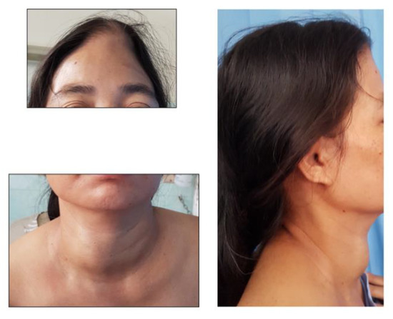 - Ogawa, Y.; Sugawara, T.; Seki, H.; Sakuma, T. Thyroid follicular carcinoma metastasized to the lung, skull, and brain 12 years after initial treatment for thyroid gland: Case report. Neurol. Med. Chir. 2006. [Google Scholar] [CrossRef] [PubMed]