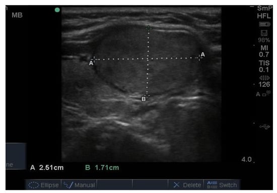 - Koike, E.; Noguchi, S.; Yamashita, H.; Murakami, T.; Ohshima, A.; Kawamoto, H.; Yamashita, H. Ultrasonographic characteristics of thyroid nodules: Prediction of malignancy. Arch. Surg. 2001, 136, 334–337. [Google Scholar] [CrossRef] [PubMed]