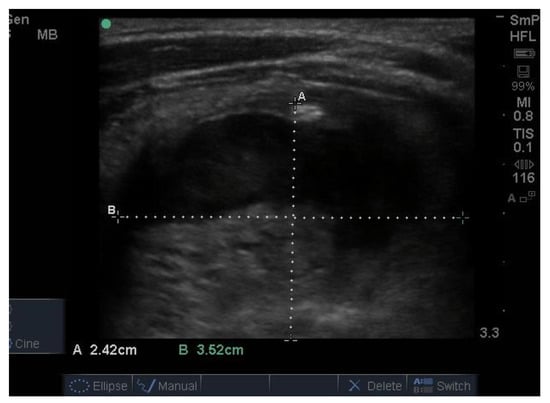 - Hegedüs, L. Thyroid size determined by ultrasound. Influence of physiological factors and non-thyroidal disease. Dan. Med. Bull. 1990, 37, 249–263. [Google Scholar] [PubMed]