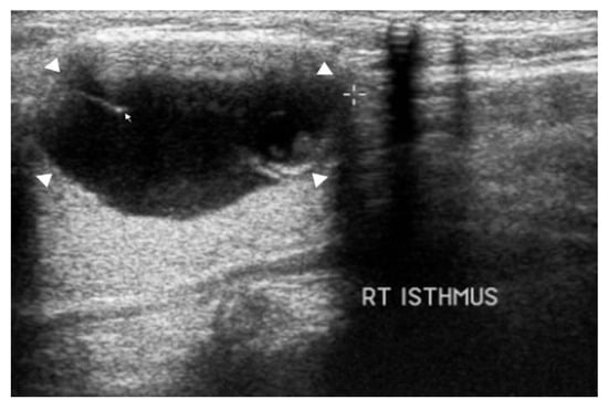 - Abbas, G.; Heller, K.S.; Khoynezhad, A.; Dubner, S.; Sznyter, L.A. The incidence of carcinoma in cytologically benign thyroid cysts. Surgery 2001, 130, 1035–1038. [Google Scholar] [CrossRef] [PubMed]
