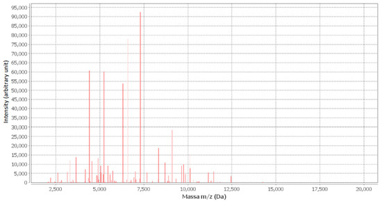The sample was then analyzed using an automated mass spectrometry microbial identification system with the MALDI-TOF technology (bioMérieux Italia SpA, 50012 Grassina Florence, Italy). Briefly, in agreement with the literature [11], the sample was prepared by mixing or coating a solution of an energy-absorbing organic compound called the matrix. When the matrix crystallizes while drying, the sample embedded in the matrix co-crystallizes. A characteristic spectrum known as the peptide mass fingerprint (PMF) is generated for the analytes in the sample based on the TOF information [11]. TheMALDI-TOF compared the PMF of bacteria in an unknown sample with the PMF contained in the database and identified it as Ralstonia pickettii (Figure 1).