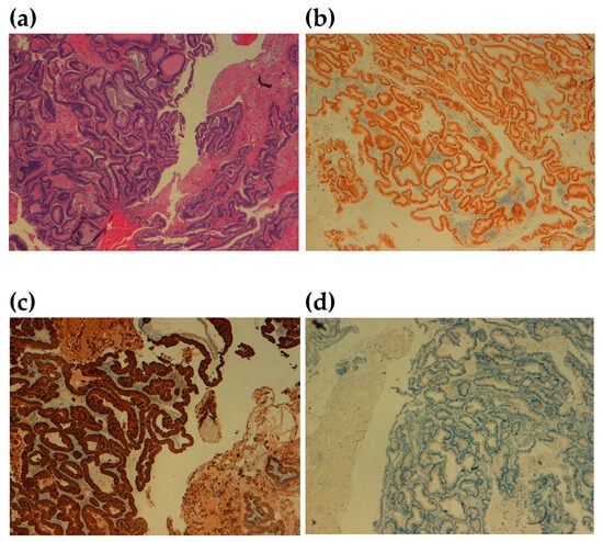 Histopathologic and immunohistochemical examination. (a) hematoxylin and eosin; (b) CDX2; (c) Cytokeratin 20; (d) Cytokeratin 7.
