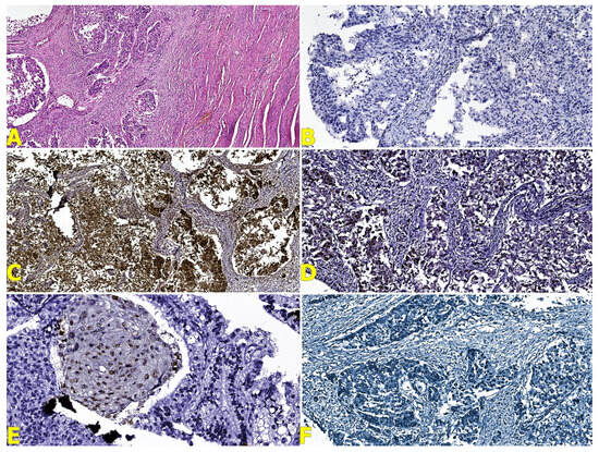 | P63 (4A4) | Negative reaction | Negative reaction | Diffuse positive nuclear reaction in the squamous component |