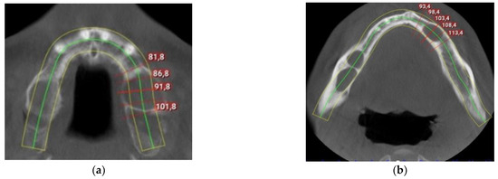 Preoperative CBCT scan: (a) maxillar keratocyst in the left upper region; (b) keratocysts in the mandible.