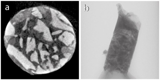 Micro-CT scan: (a) horizontal section; (b) vertical section.