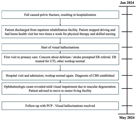 - Kompella, S.; Kaushal, S.; Khan, S.A.; Alvarez Villalba, C.L. A Case Report and Review: Charles Bonnet Syndrome Plus With Dementia. HCA Healthc. J. Med. 2022, 3, 23–28. [Google Scholar] [CrossRef] [PubMed]