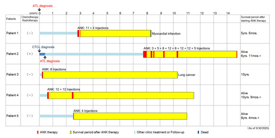 This study presents the clinical course of five patients who were followed for more than five years after ANK therapy (Table 1, Figure 1).