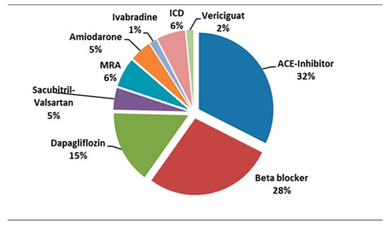 Currently, most of our patients are treated with ACE-I in association with beta-blockers and mineralocorticoid receptor antagonists. A small number of patients are being prescribed novel therapies as shown in Figure 3.