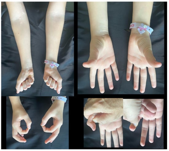 One month later, the patient and the parents complained about dysesthesia in the index and thumb of the right hand, along with difficulty in moving those fingers. The mother also observed an altered profile in the daughter’s hand. The patient was referred to our hospital 5 months after the trauma occurred while waiting for spontaneous recovery.