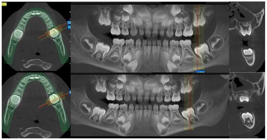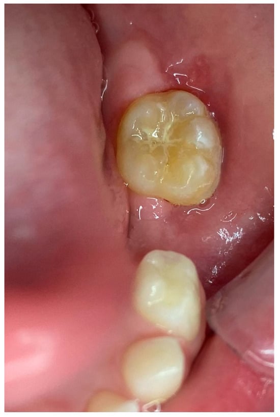 Postoperative clinical imaging. Tooth #75 was extracted, and tooth #36 had fully erupted.