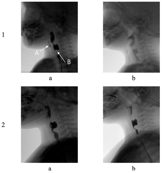 Follow-up VFSS (June 2023, age 1 year, 8 months) documented progression of swallowing dysfunction, characterized by prolonged oral and pharyngeal phase duration, persistent pharyngeal residue, and nasopharyngeal regurgitation. Silent aspiration episodes persisted, and progressive cricopharyngeal thickening development was noted (