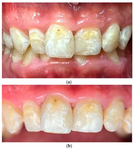 These findings are consistent with previous in vitro and in situ research demonstrating the efficacy of hydroxyapatite-based products in enhancing enamel remineralization and reducing hypersensitivity [5,24,30,31]. While these studies have shown that toothpaste alone can provide significant benefits, the combined application was considered particularly advantageous in this case due to the severity of mineral loss and the need for an intensive remineralization strategy. However, further research is required to compare the long-term outcomes of different remineralization protocols in similar clinical conditions.