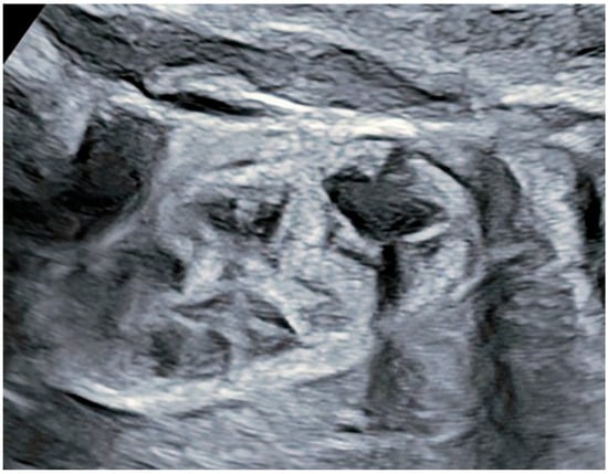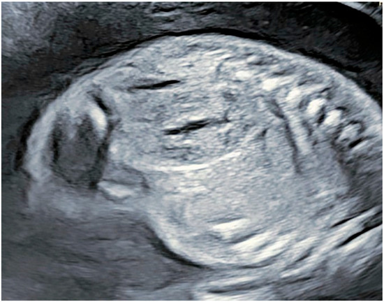 After the genetic analysis was completed by performing a DNA study of the single-nucleotide variants (SNVs) and copy number variation (CNV), the patient was reported as a heterozygote of the genetic type NM_001009944.3 (PKD1):c.9157G>A p.(Ala3053Thr). A Blueprint Genetics Cystic Kidney Disease Panel Plus Analysis was conducted, encompassing a sequencing analysis and copy number variation analysis. The panel focused on protein-coding exons, exon–intron junctions, and specific non-coding variations. It was utilized to identify single-nucleotide variants, minor insertions–deletions, and copy number changes, including single exon or bigger deletions and duplications. The diagnosis of ADPKD was confirmed, as a heterozygous variant of the PKD1 gene was identified. The variant is classified as being likely pathogenic and is associated with cases of autosomal dominant polycystic kidney disease. Regular examinations are recommended in order to monitor the progression of the disease. Due to the prevalence of composite genotypes in numerous prenatal cases described in the literature, the patient’s sample was subjected to rigorous quality control measures, which included assessments for contamination and sample mix-ups. In addition, the presence of a second variant in either PKD1 or PKD2 was evaluated and rejected.