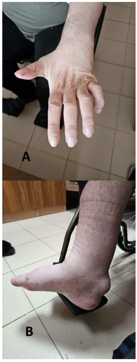 We present a 37-year-old male admitted to the First Clinic of Neurology, University Hospital “Saint Marina”, Varna, Bulgaria, with long-standing muscle weakness in his arms and legs. Written informed consent was obtained from the patient for the publication of this case report, including the accompanying photographs.