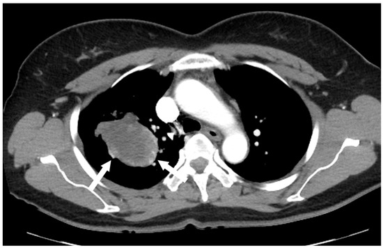 3. Halle, M.; Blum, U.; Dinkel, E.; Brugger, W. CT and MR features of primary pulmonary hemangiopericytomas. J. Comput. Assist. Tomogr. 1993, 17, 51–55. [Google Scholar] [CrossRef] [PubMed]