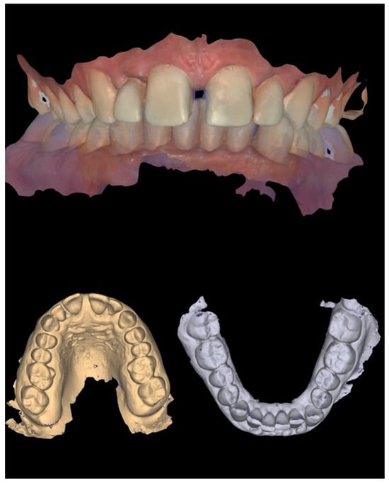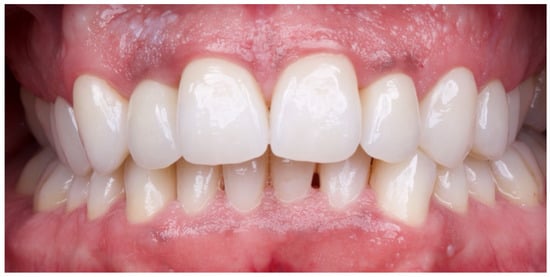 - Jorquera, G.; Hardan, L.; Bourgi, R.; Arias, D.; Cuevas-Suárez, C.E.; Pietrzycka, K.; Lukomska-Szymanska, M. Full Digital Workflow for Aesthetic Rehabilitation of the Upper Teeth: A Case Report. Appl. Sci. 2024, 14, 5957. [Google Scholar] [CrossRef]