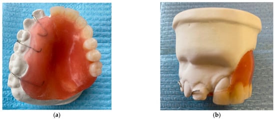 - King, G.E.; Martin, J.W. Cast Circumferential and Wire Clasps for Obturator Retention. J. Prosthet. Dent. 1983, 49, 799–802. [Google Scholar] [CrossRef]