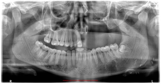 - Neville, B.W.; Damm, D.D.; Allen, C.M.; Chi, A.C. Color Atlas of Oral and Maxillofacial Diseases, 1st ed.; Elsevier, Inc.: Philadelphia, PA, USA, 2019. [Google Scholar]