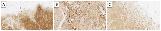 Immunohistochemistry of the lesion. (A) Melan-A; (B) HMB-45; (C) S100; original magnifications (A–C) 40×.