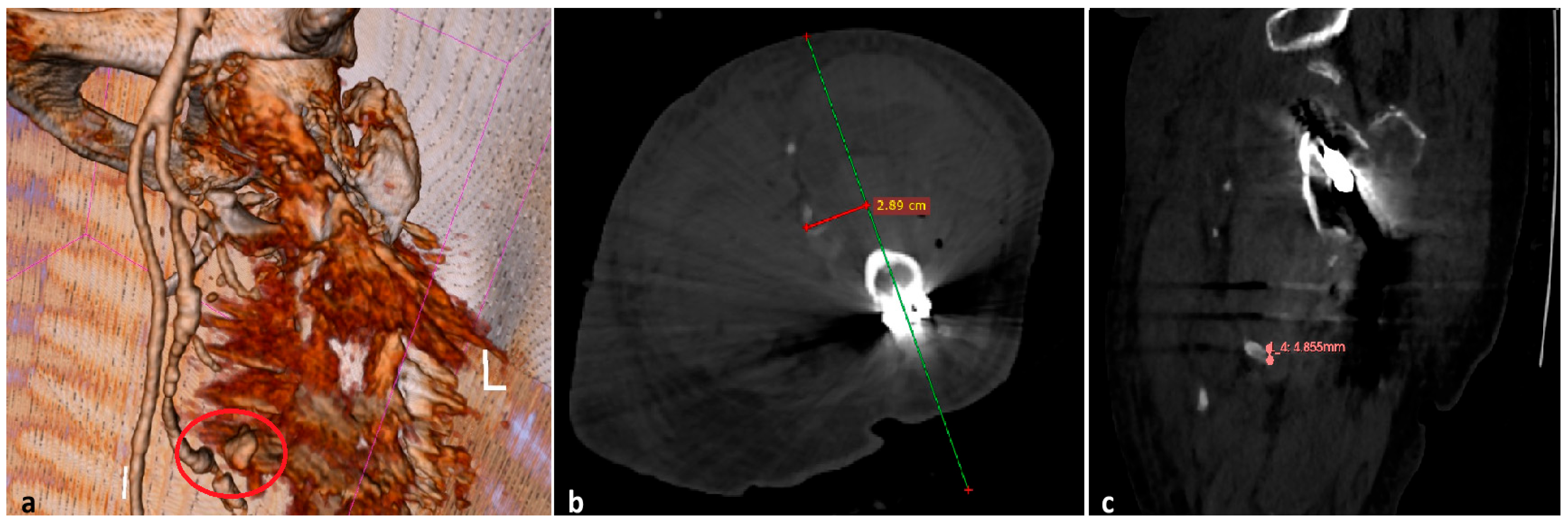 - Elzayat, M.; Ahmed, A.; O’Connell, J.; Davitt, S.; O’Neill, B.J. Pseudoaneurysm as a Complication of Femur Fracture Fixation. J. Orthop. Case Rep. 2025, 15, 146–149. [Google Scholar] [CrossRef]