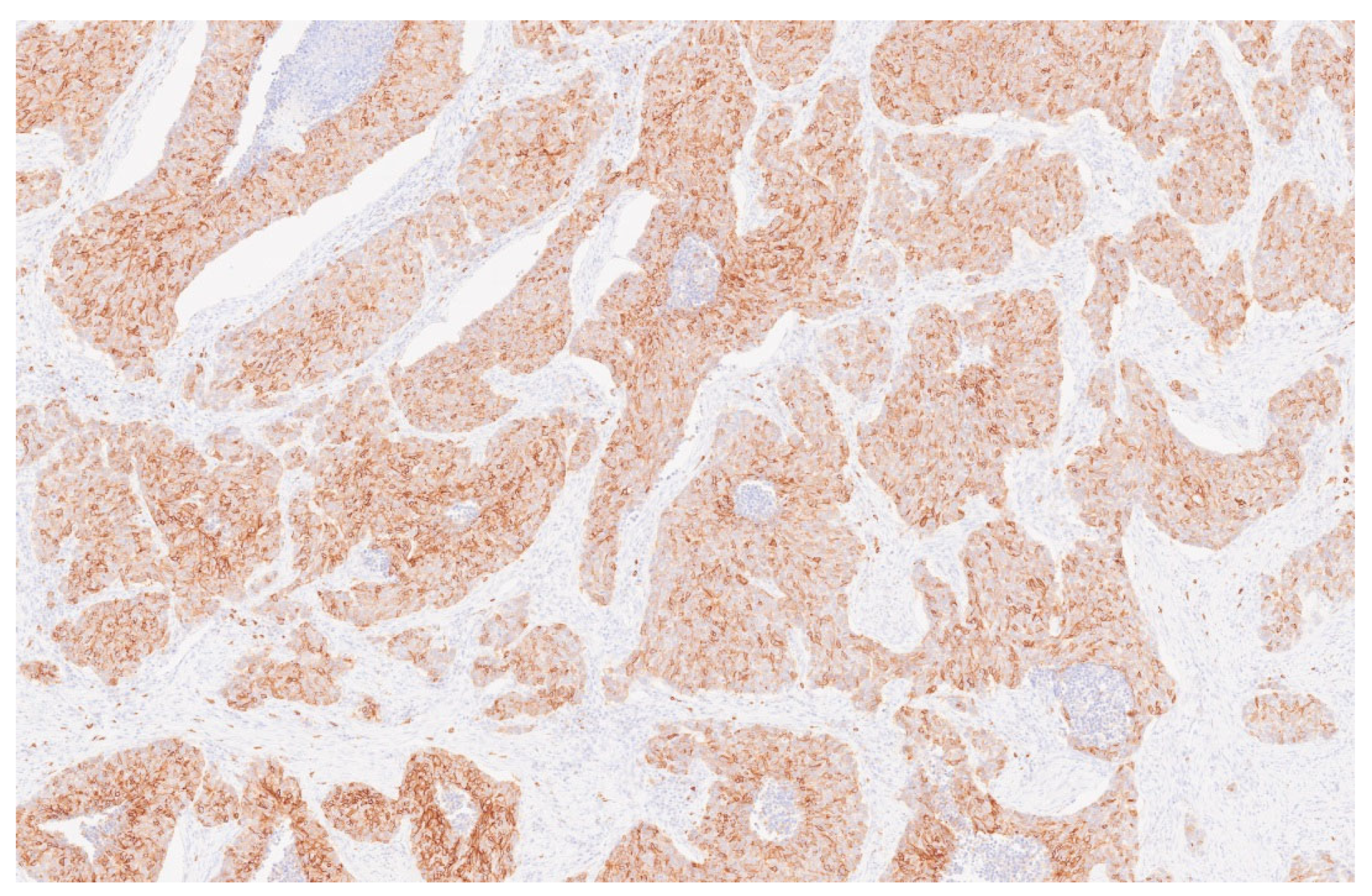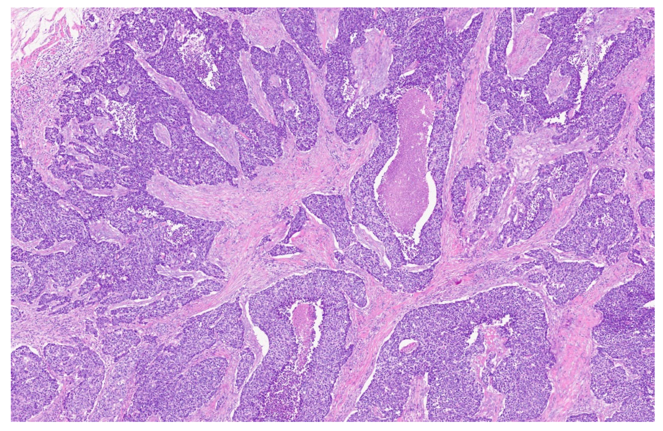 - Anupriya, S.; Mahesh, P.; Sharada, P.; Swaminathan, U.; Nagamalini, B.; Hosthor, S.S. Immunohistochemical analysis of laminin expression in adenoid cystic carcinoma. J. Oral. Maxillofac. Pathol. 2014, 18 (Suppl. 1), S26–S31. [Google Scholar] [CrossRef] [PubMed]