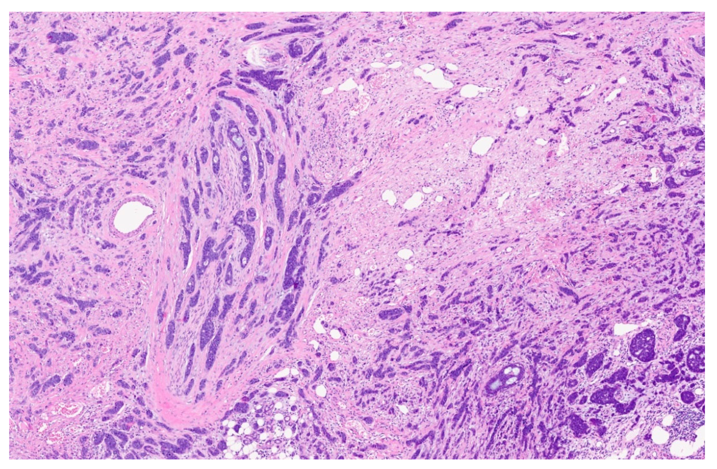 - Barrett, A.W.; Speight, P.M. Perineural invasion in adenoid cystic carcinoma of the salivary glands: A valid prognostic indicator? Oral. Oncol. 2009, 45, 936–940. [Google Scholar] [CrossRef]