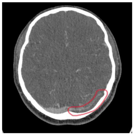 The pathophysiology of CVST in the context of TXA use is multifactorial. TXA’s anti-fibrinolytic properties may contribute to thrombus formation within the cerebral venous system, particularly in the transverse and sigmoid sinuses, as seen in this patient [13,14]. There is ongoing debate regarding whether the thrombotic effects of TXA are dependent on its synthetic lysine derivative structure. Tenborn et al. [15] suggest that TXA competes for the lysine-binding site on plasminogen, inhibiting its interaction with fibrin and thereby preventing thrombus formation. Nonetheless, large systematic reviews and meta-analyses involving over 100,000 patients have not demonstrated a significant increase in thrombotic events with TXA use, especially when administered at standard therapeutic doses [5,8]. Notably, pharmacovigilance data and isolated case reports have suggested possible thrombotic risks, including rare occurrences of CVST [9,10,11,12]. Therefore, a clear distinction must be made between a possible association and a direct causal relationship. The present case adds to the limited reports suggesting that TXA might contribute to thrombosis under specific circumstances.