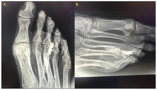 11. Albtoush, O.M.; Xenitidis, T.; Horger, M. Intermetatarsal bursitis as first disease manifestation in different rheumatological disorders and related MR-imaging findings. Rheumatol. Int. 2019, 39, 2129–2136. [Google Scholar] [CrossRef] [PubMed]