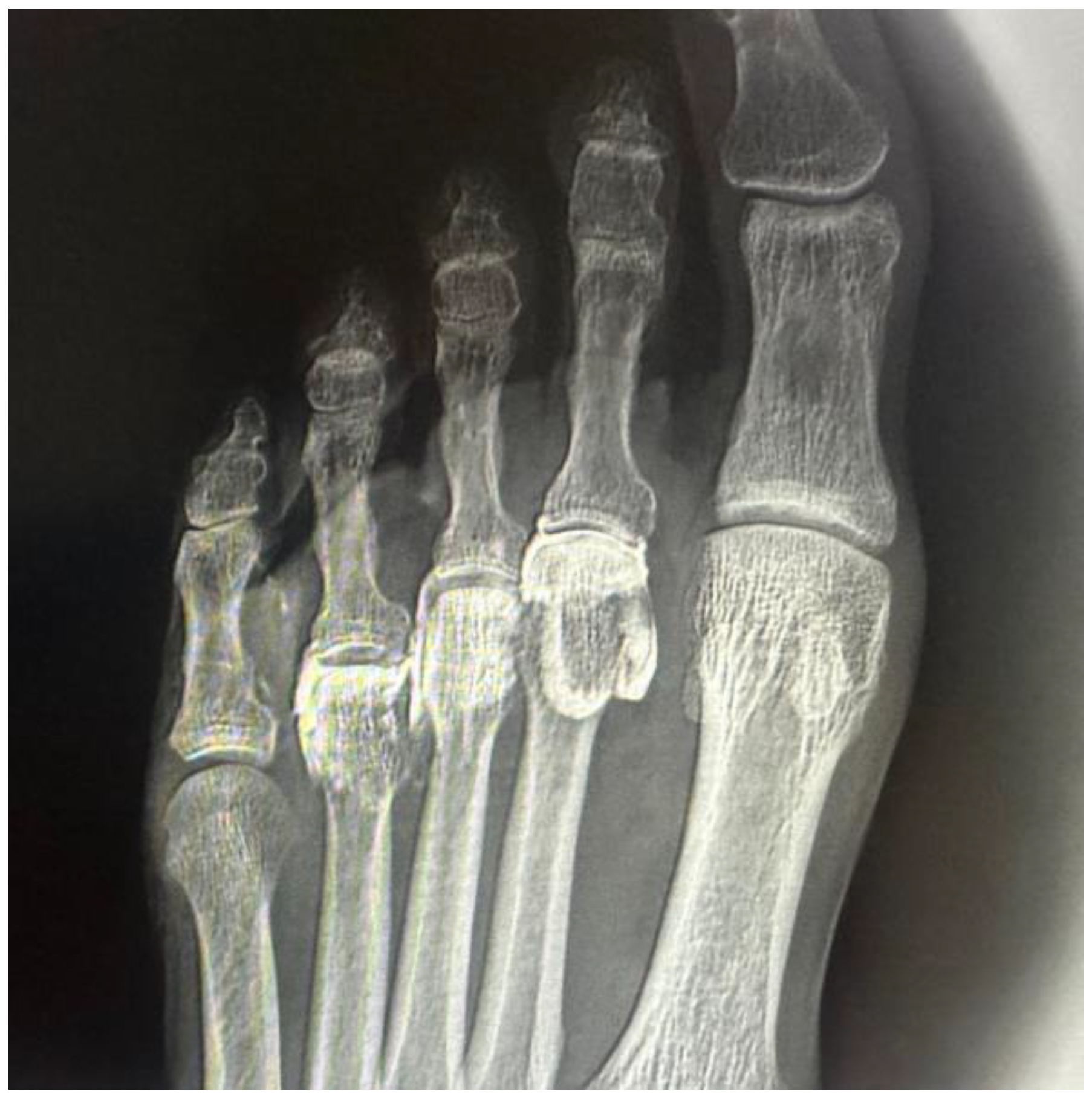 1]. It is a multifactorial clinical syndrome characterized by plantar pain in the region of the metatarsal heads, whose etiology may involve structural, mechanical, neurological, or inflammatory alterations. One of the conditions associated with metatarsalgia is Morton’s neuroma, defined as a compressive neuropathy of the common plantar digital nerve, with a higher prevalence in the third intermetatarsal space. Clinically, it presents as a burning pain radiating to the adjacent toes, often accompanied by paresthesias, electric shock-like sensations, and exacerbation when wearing tight footwear. Its pathogenesis involves perineural fibrosis, axonal degeneration, and degenerative vascular changes, potentially resulting from chronic repetitive trauma to the forefoot and biomechanical factors such as compression by the deep transverse intermetatarsal ligament [