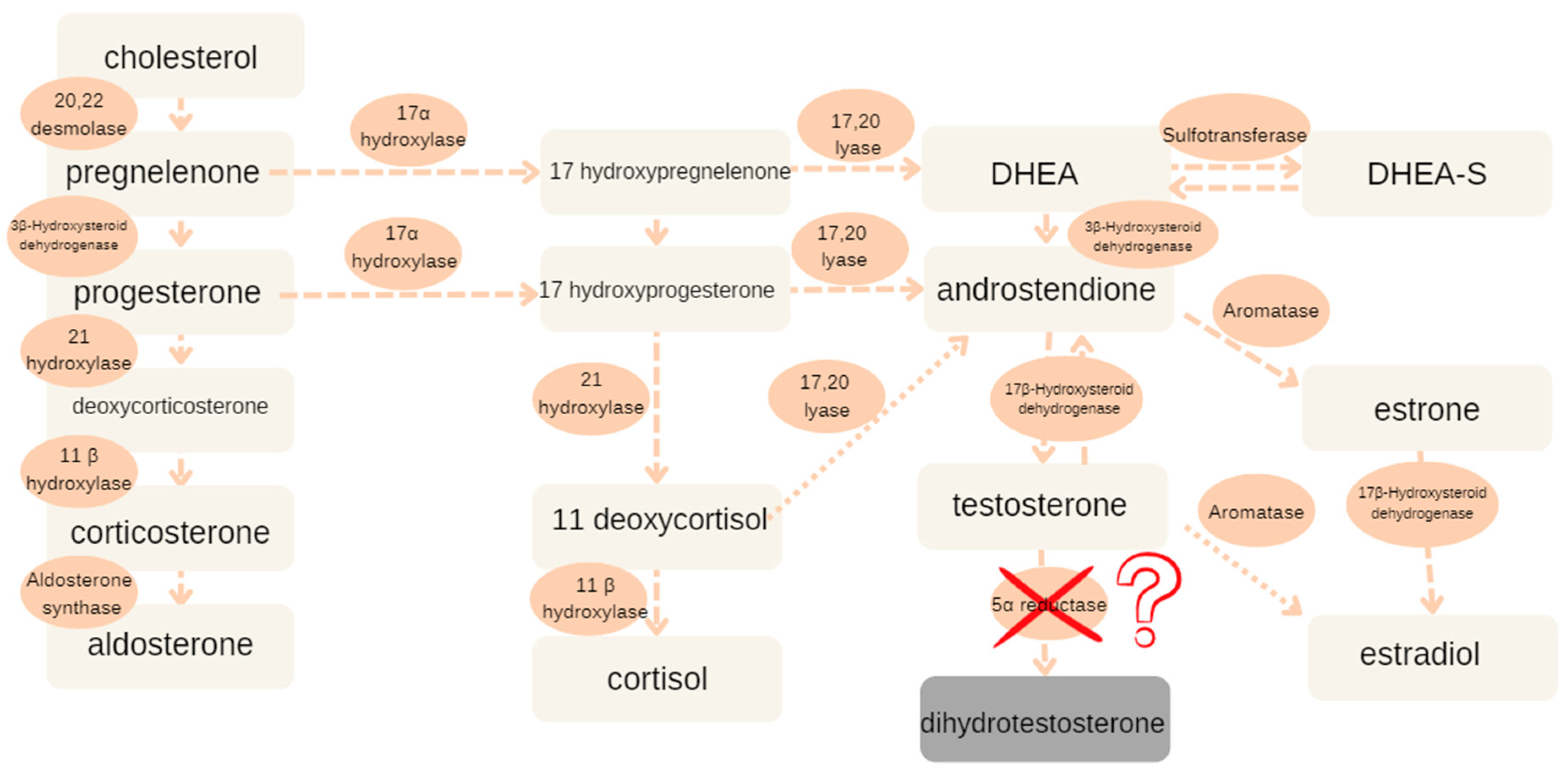 - Miller, W.L. Disorders of androgen synthesis—From cholesterol to dehydroepiandrosterone. Med. Princ. Pract. 2005, 14, 58–68. [Google Scholar] [CrossRef]