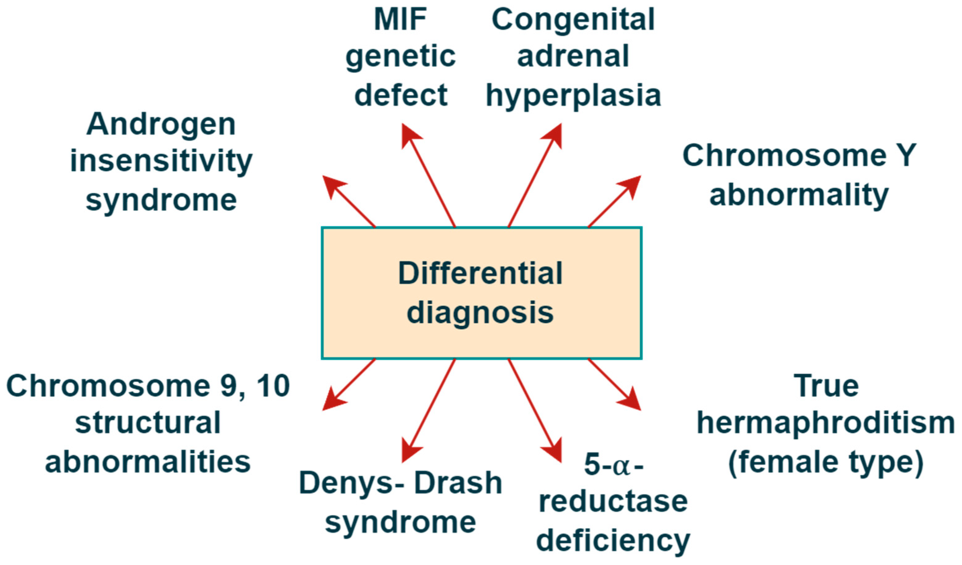 - Hiort, O.; Marshall, L.; Bacia, A.; Bouteleux, M.; Wünsch, L. Differences of sex development in children and adolescents: Principles. diagnostics and management. Monatsschrift Kinderheilkd. 2019, 167, 598–606. [Google Scholar] [CrossRef]