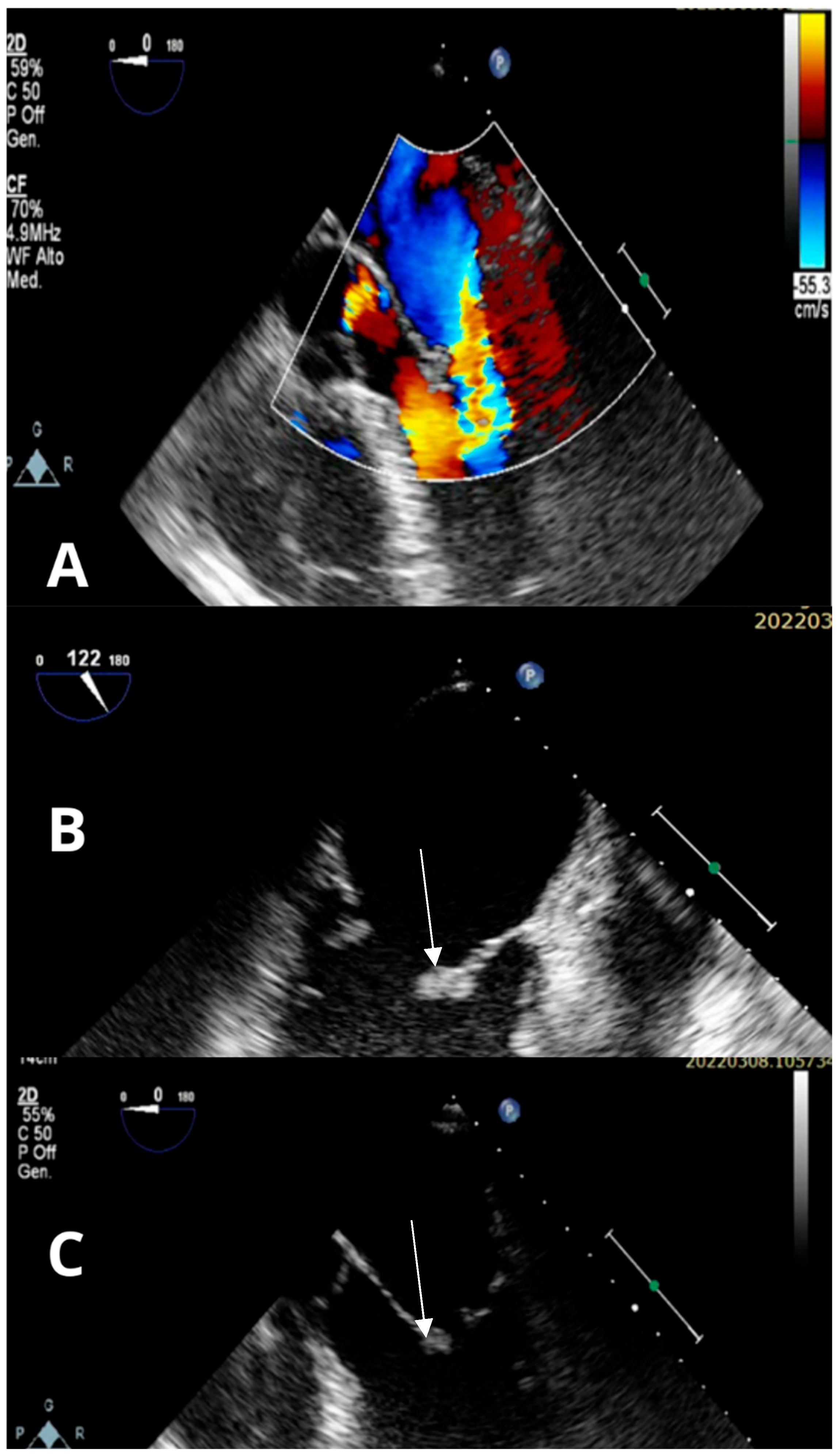 - Celeng, C.; Takx, R.A.P. Cancer-associated marantic endocarditis: A rare but relevant complication. Eur. Heart J. Cardiovasc. Imaging 2023, 24, 1627–1628. [Google Scholar] [CrossRef] [PubMed]