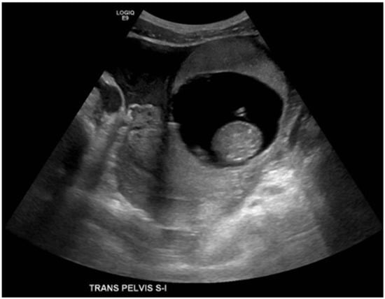 - Palma, R.; Silva, C.; Tomé, A.; Pereira, E.; Regalo, A.F. Interstitial Ectopic Pregnancy: A Rare Diagnosis. Cureus 2023, 15, e43107. [Google Scholar] [CrossRef] [PubMed] [PubMed Central]