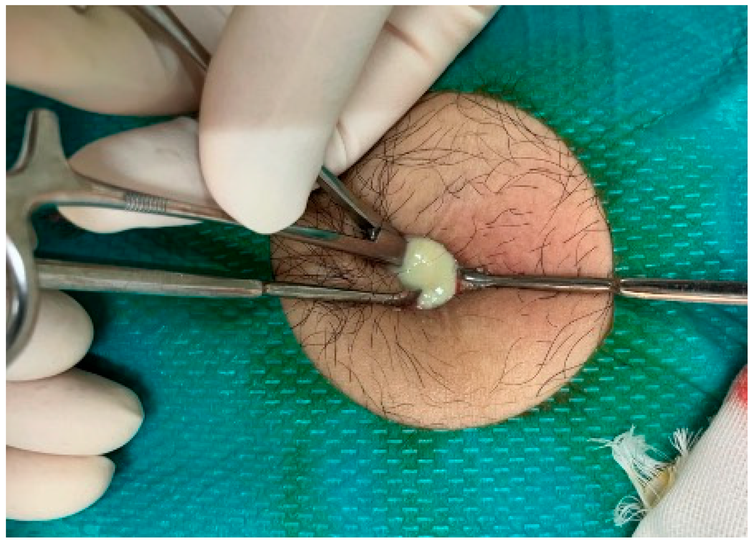 Figure 5). The abscess was drained with the patient under sedation, with local anesthesia administered as follows: intravenous midazolam (3 mg), intravenous pentazocine (15 mg), and subcutaneous injection of lidocaine (8 mg). When the base of the umbilicus was opened with mosquito forceps, a large amount of purulent discharge was observed (