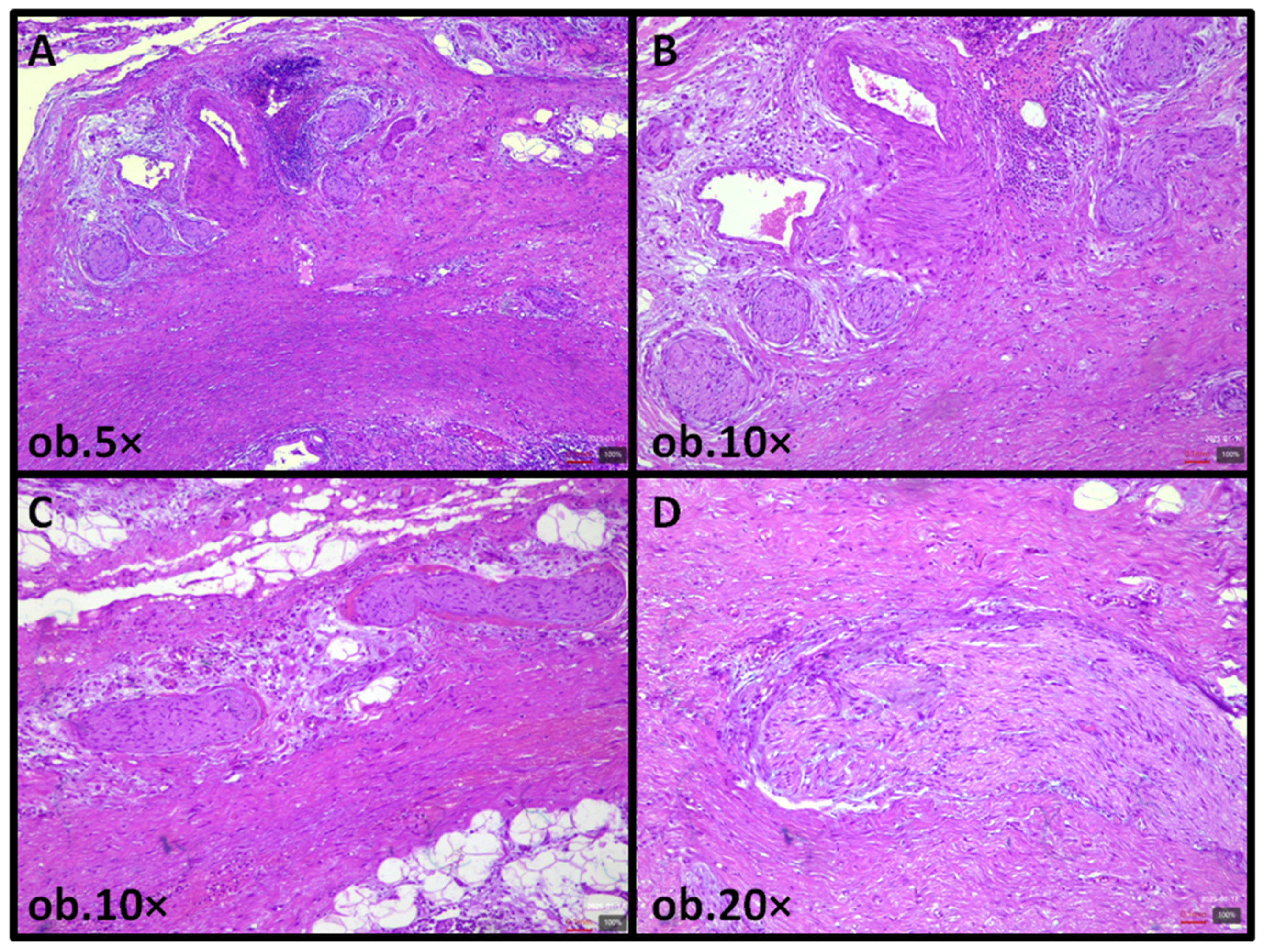 - UC Davis Pathology Teaching File. Ganglioneuroma vs Schwannoma: Histological Features. Universitu of California Davis, School of Medicine. 2019. Available online: https://health.ucdavis.edu/pathology/education/residency_program/caseofthemonth/201905/final.html (accessed on 2 December 2025).