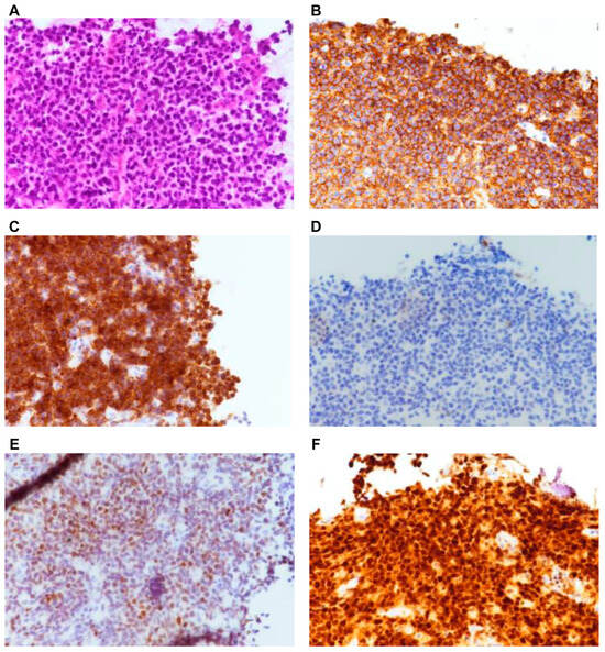+, with a Ki-67 index of 20%, confirming MCL, stage IV. Immunochemotherapy with rituximab, cyclophosphamide, doxorubicin, vincristine, and prednisone (R-CHOP) was commenced under mechanical ventilation. Shortly thereafter, left-sided continuous thoracic drainage was also initiated. However, in response to immunochemotherapy, the bilateral pleural effusions gradually subsided, enabling extubation, and there was no reaccumulation after removal of both chest tubes. Furthermore, generalized lymphadenopathy regressed, and bone marrow examination revealed resolution of lymphoma infiltration, resulting in complete remission.