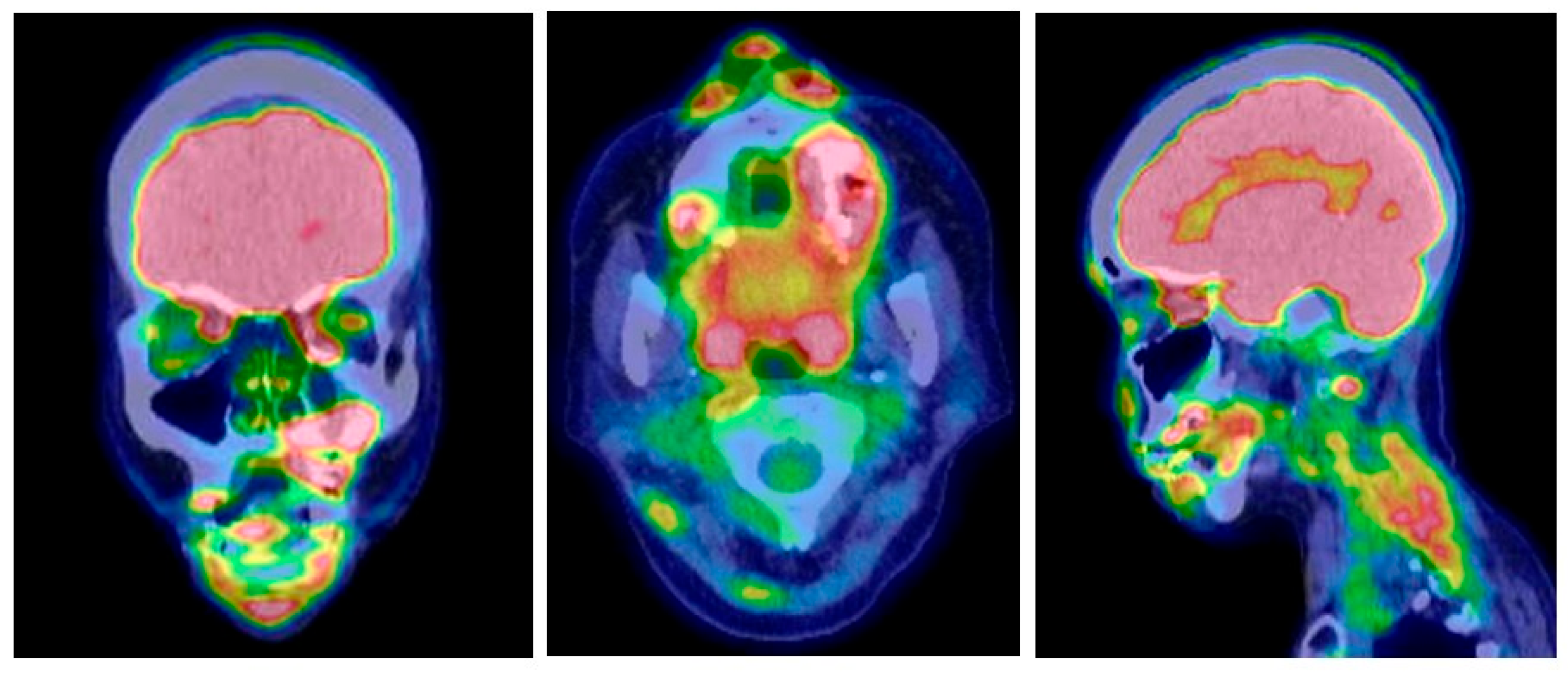 - Todisco, A.; Cavaliere, C.; Vaglio, A.; Marano, M.; Bonometti, A.; Passoni, E.; Berti, E.; Cirillo, M.; Cirillo, G. Erdheim-Chester disease: A challenging diagnosis for an effective therapy. Clin. Neurol. Neurosurg. 2020, 194, 105841. [Google Scholar] [CrossRef]
