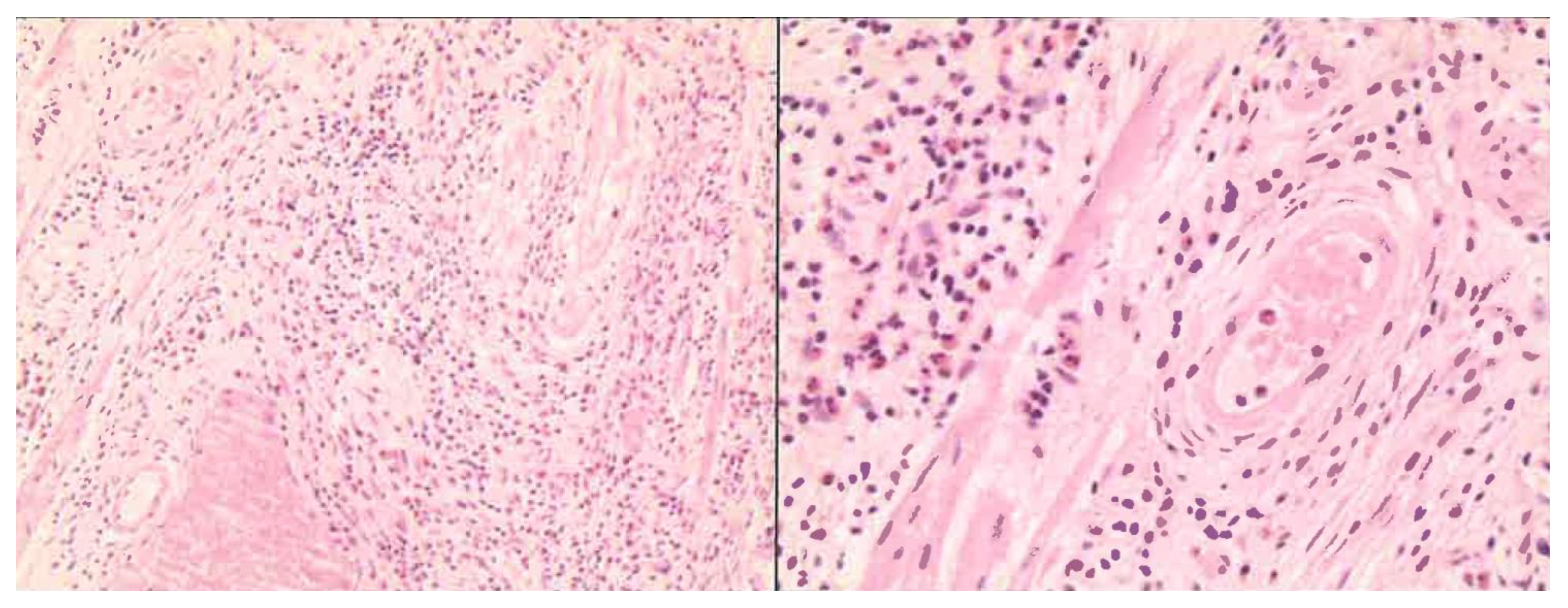 | Nodular fasciitis | Myxoid stroma; tissue culture-like spindle cells; rapid growth | SMA+, Actin+; CD34–, CD117– | Reactive lesion; self-limited; may be misdiagnosed as sarcoma |