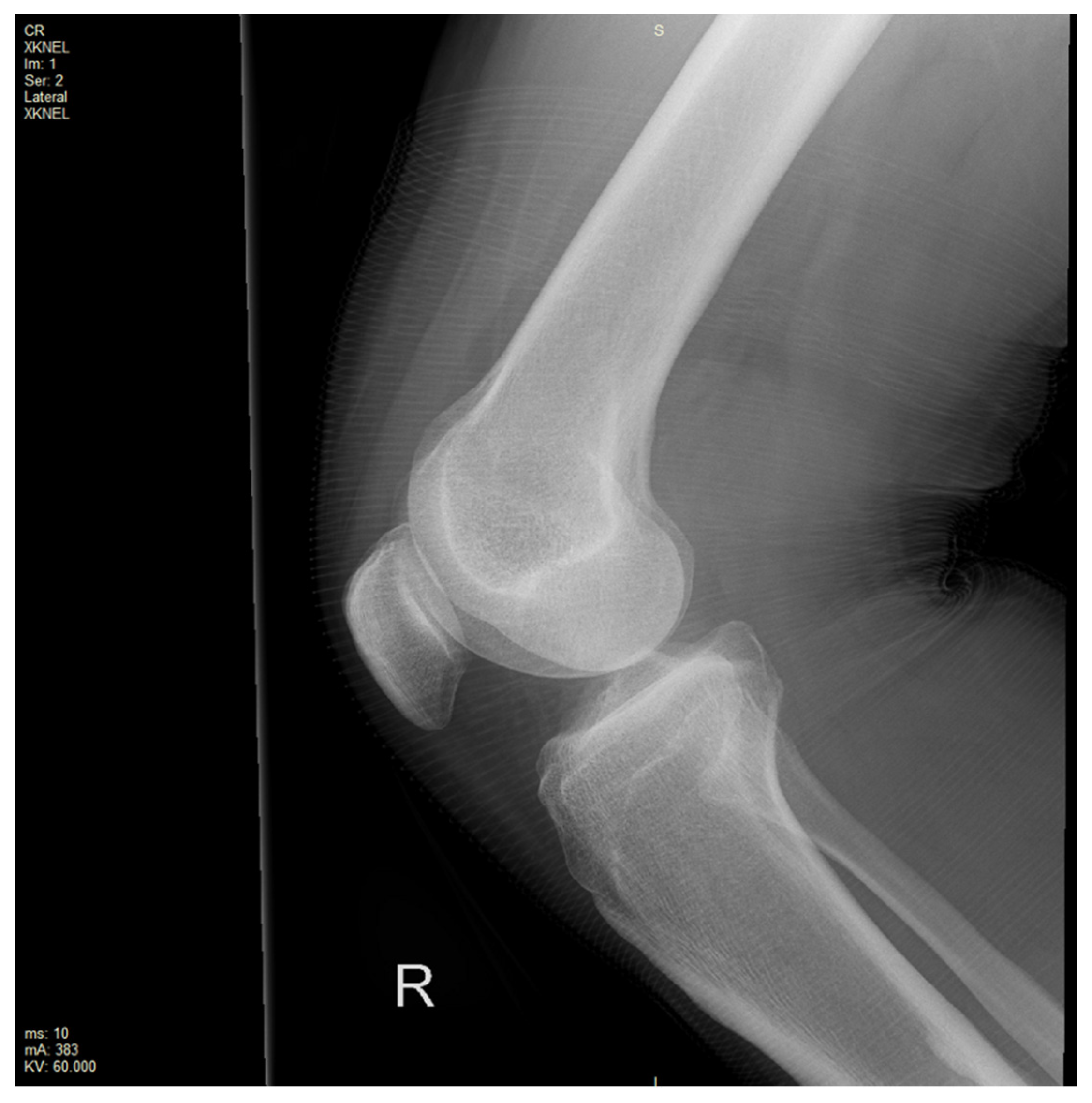 An X-ray of the right knee was initially performed to rule out a bony injury (