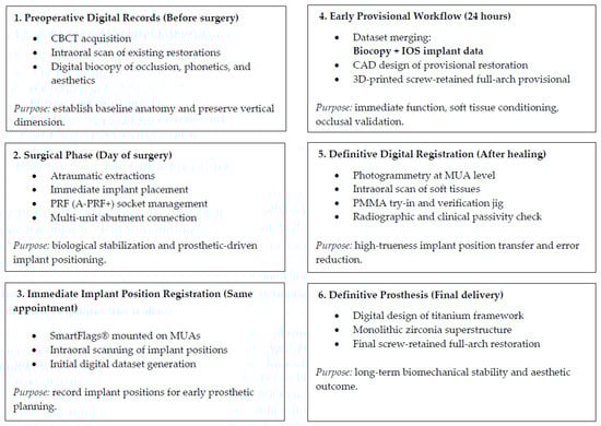 Take-Home Message: Immediate implant placement with PRF and photogrammetry provides stable, predictable full-arch outcomes even in patients transitioning from failing tooth- and implant-supported prostheses.