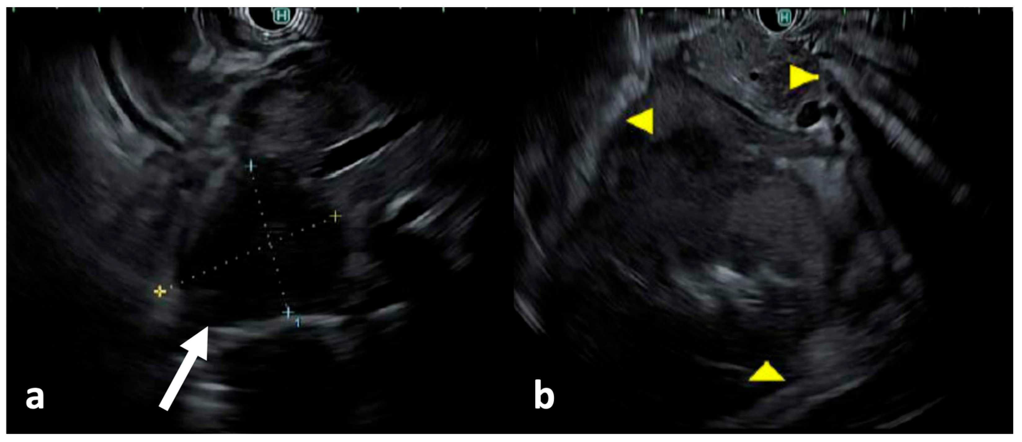 - Nakaji, S.; Hirata, N.; Yoshimura, S.; Shiratori, T.; Kobayashi, M.; Ishii, E.; Matsue, K. A case of primary pancreatic Burkitt’s lymphoma diagnosed by EUS-guided FNA. Gastrointest. Endosc. 2013, 77, 958–959. [Google Scholar] [CrossRef] [PubMed]