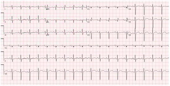 Electrocardiogram demonstrating right axis deviation and left atrial enlargement.