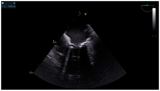 TEE preoperative image showing mitral valve calcification with size of 38 mm.